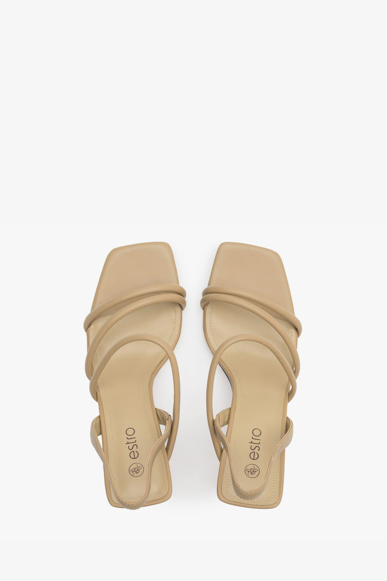 Women's sand beige strappy sandals made of natural leather, Estro brand - presentation of the footwear from above.