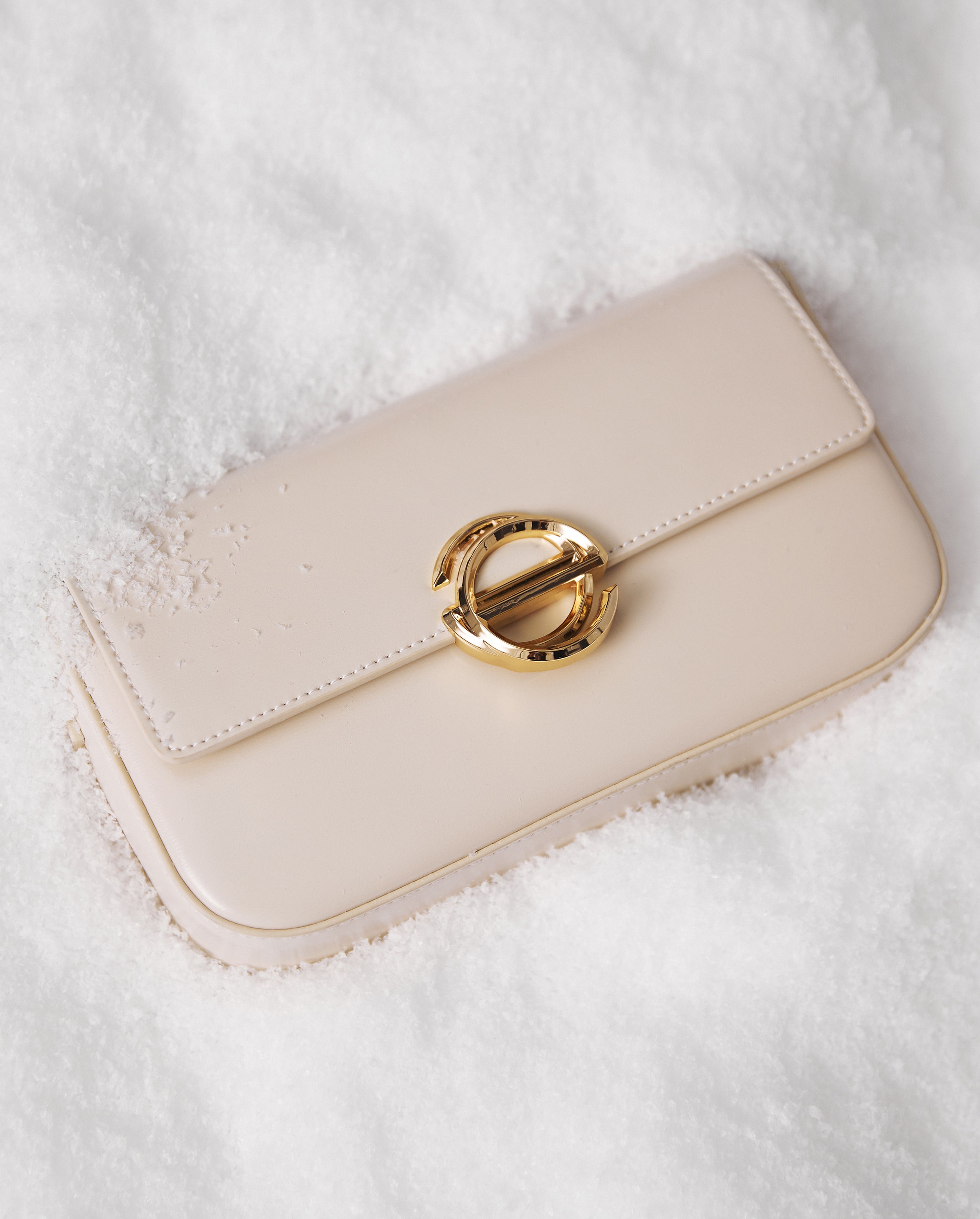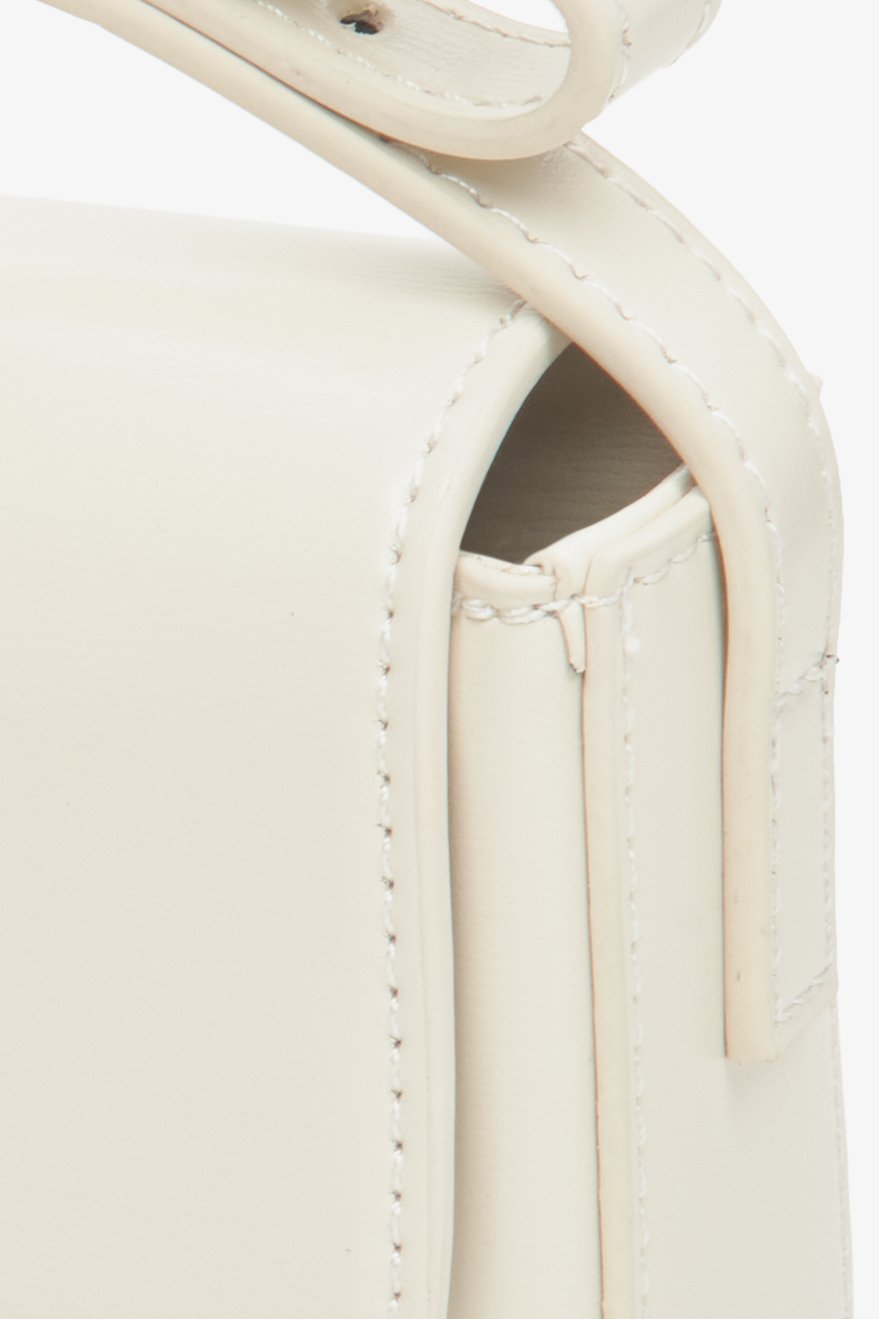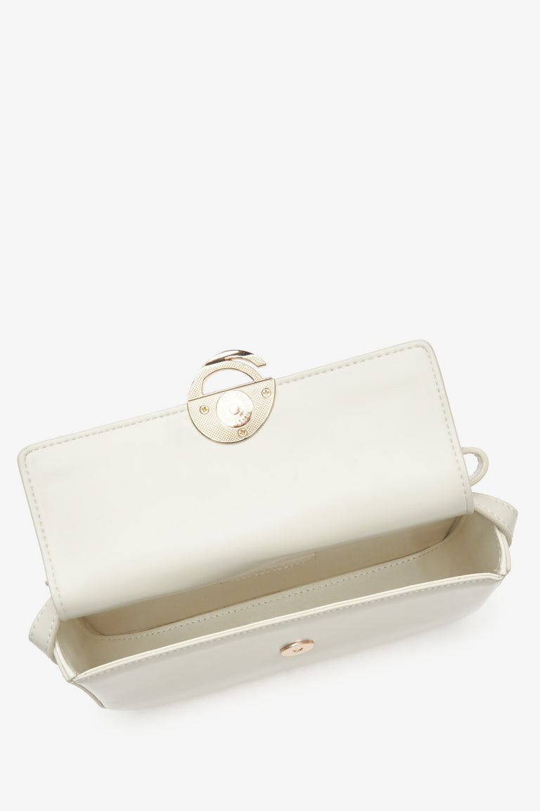 This women's small light beige handbag from Estro is crafted from luxurious genuine leather and detailed with golden hardware that adds a sparkle of elegance. Its sophisticated design makes it the perfect accessory for any special occasion.