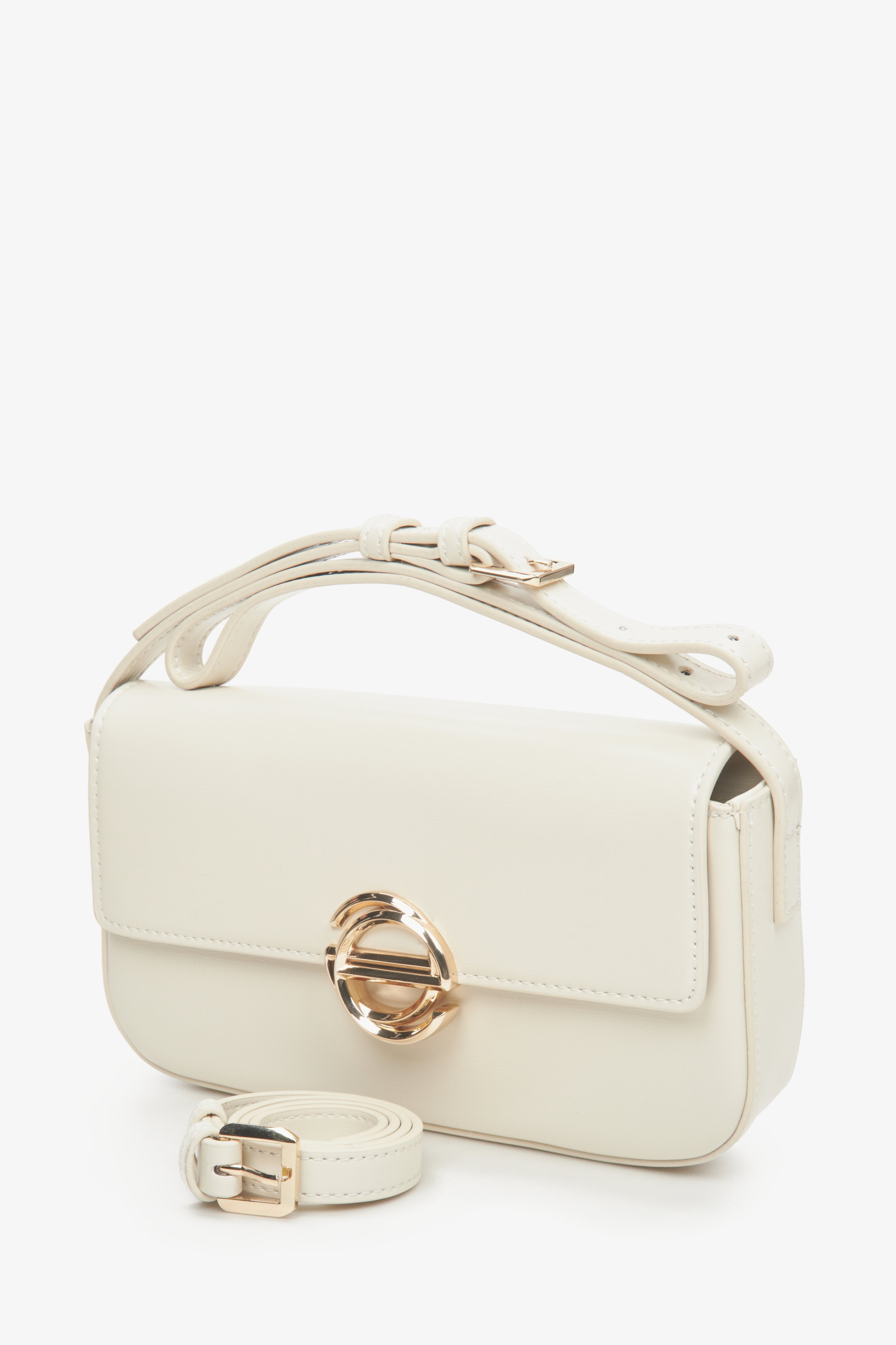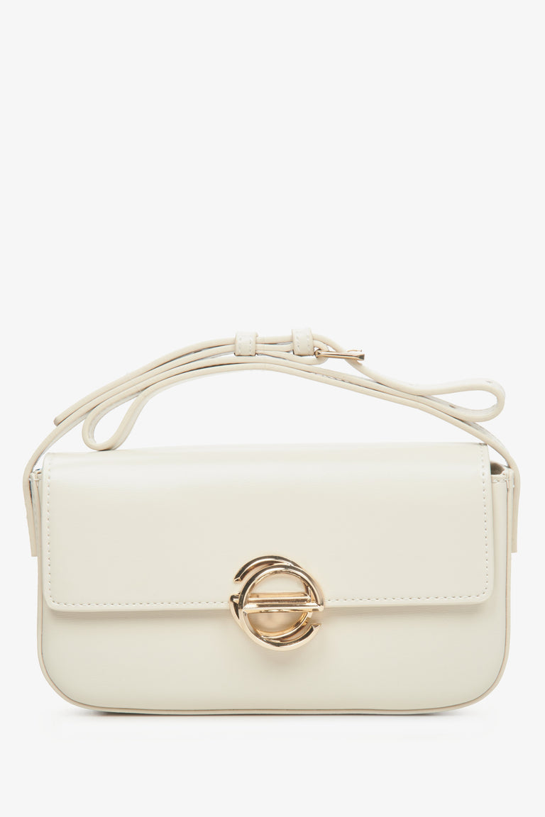 Women's Small Light Beige Leather Handbag with Golden Hardware Estro ER00113755