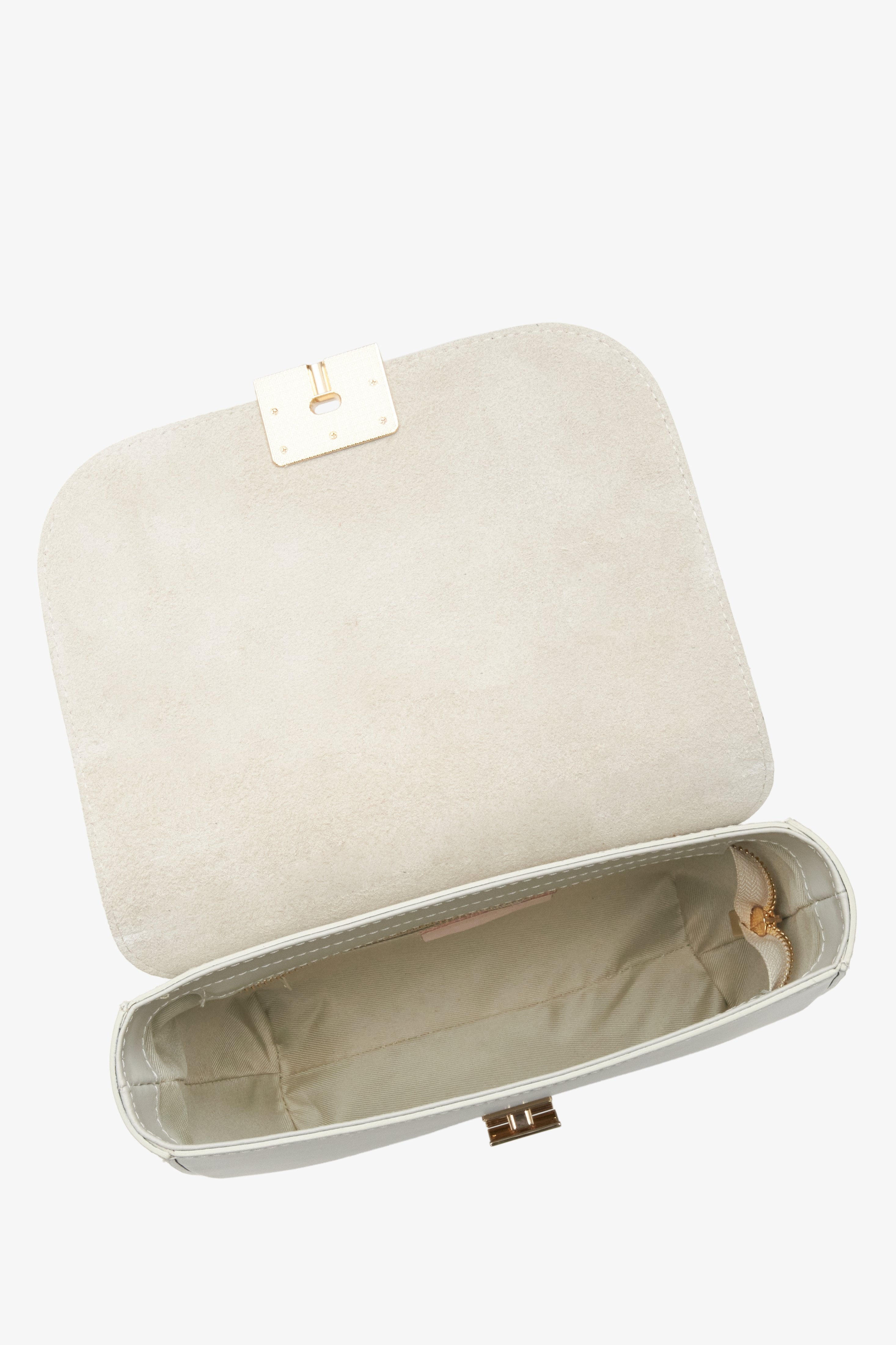 Estro milky-beige crescent-shaped handbag made of Italian genuine leather - close-up on the interior of the model.