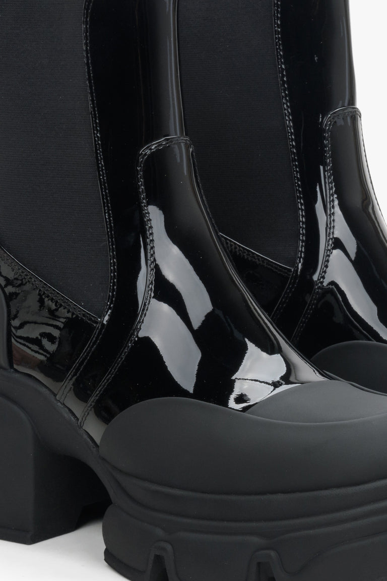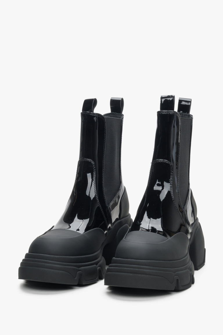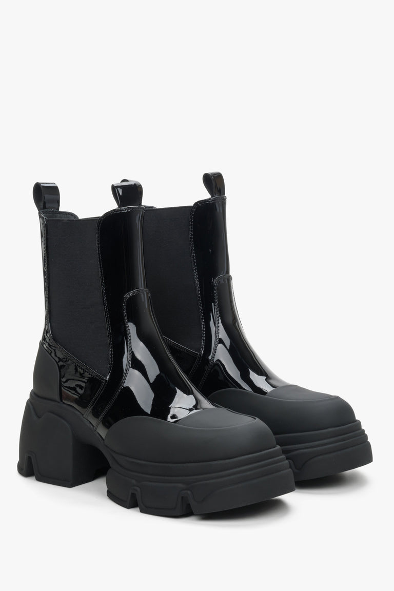 Women's Black Chelsea Boots made of Patent Genuine Leather Estro ER00114315