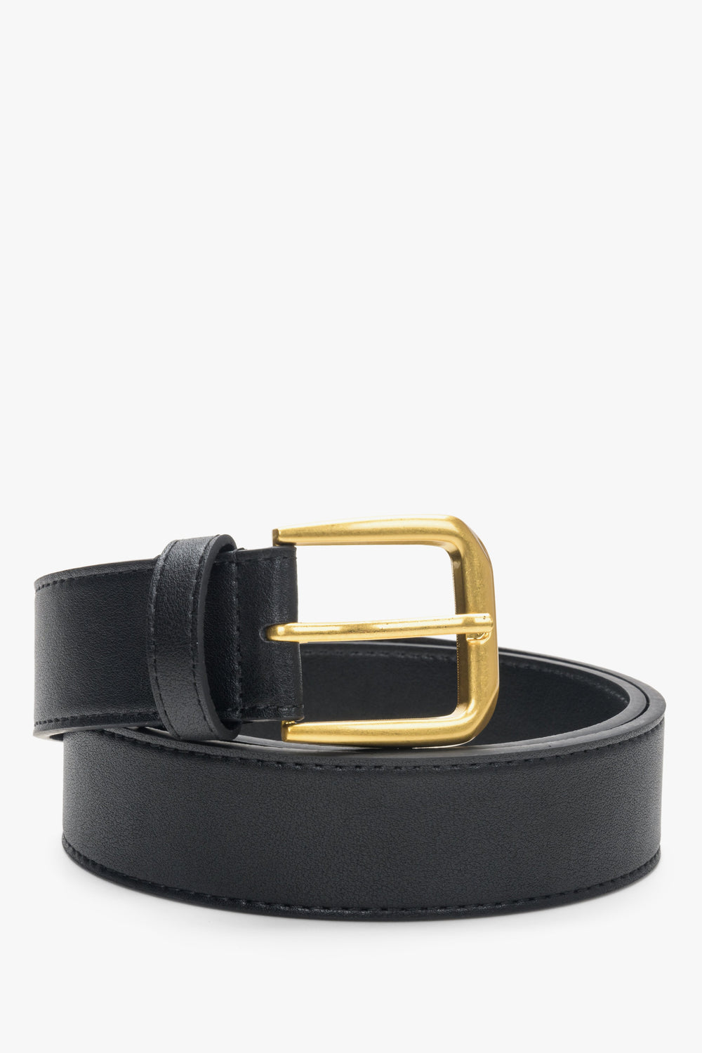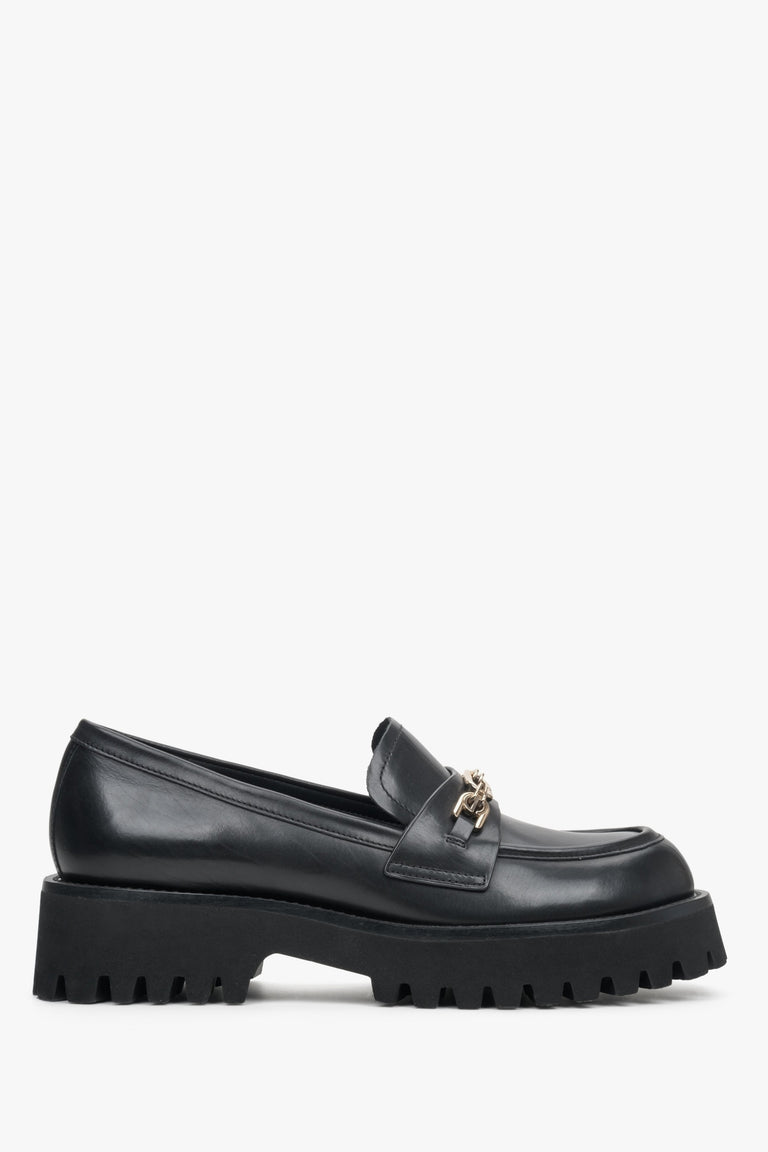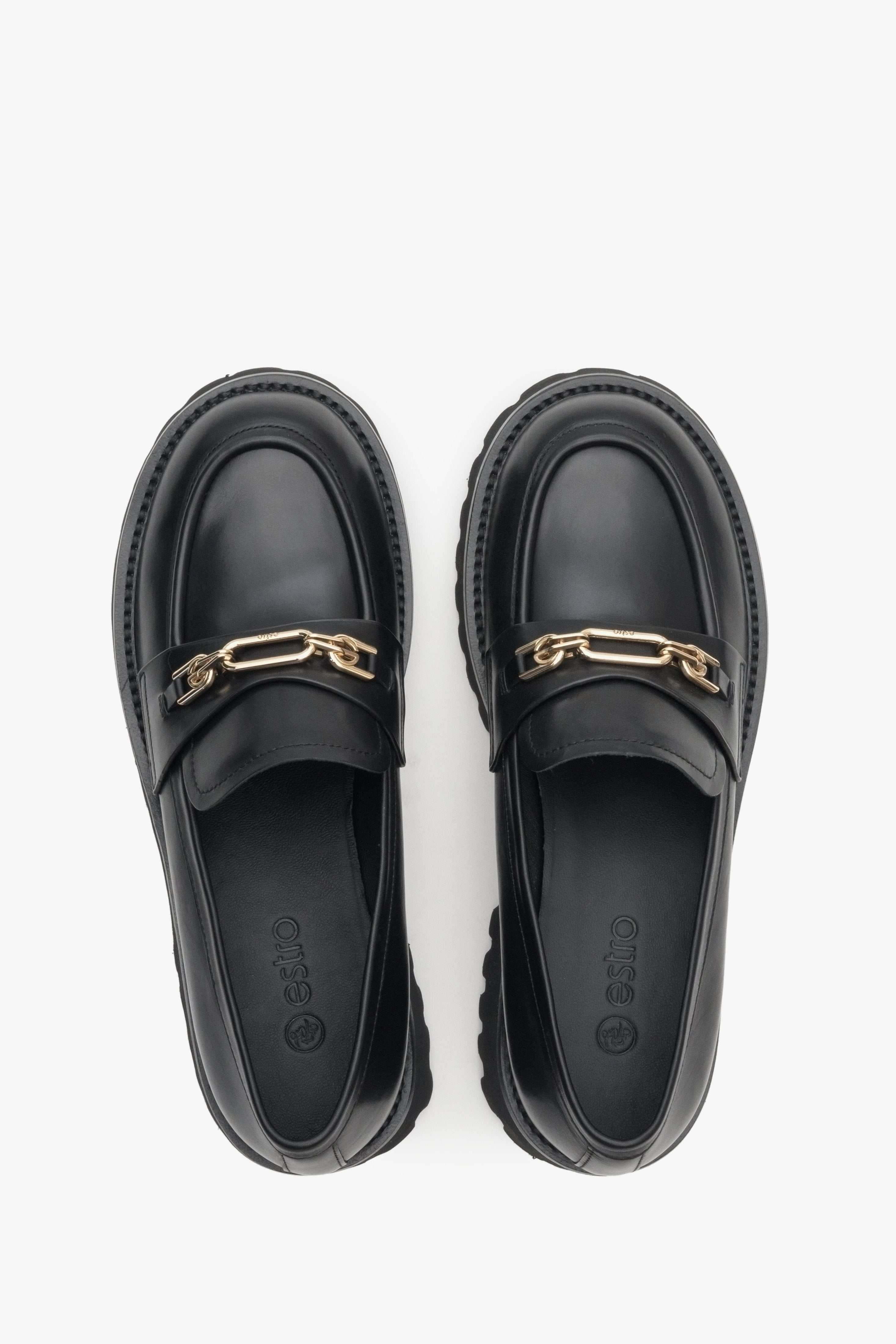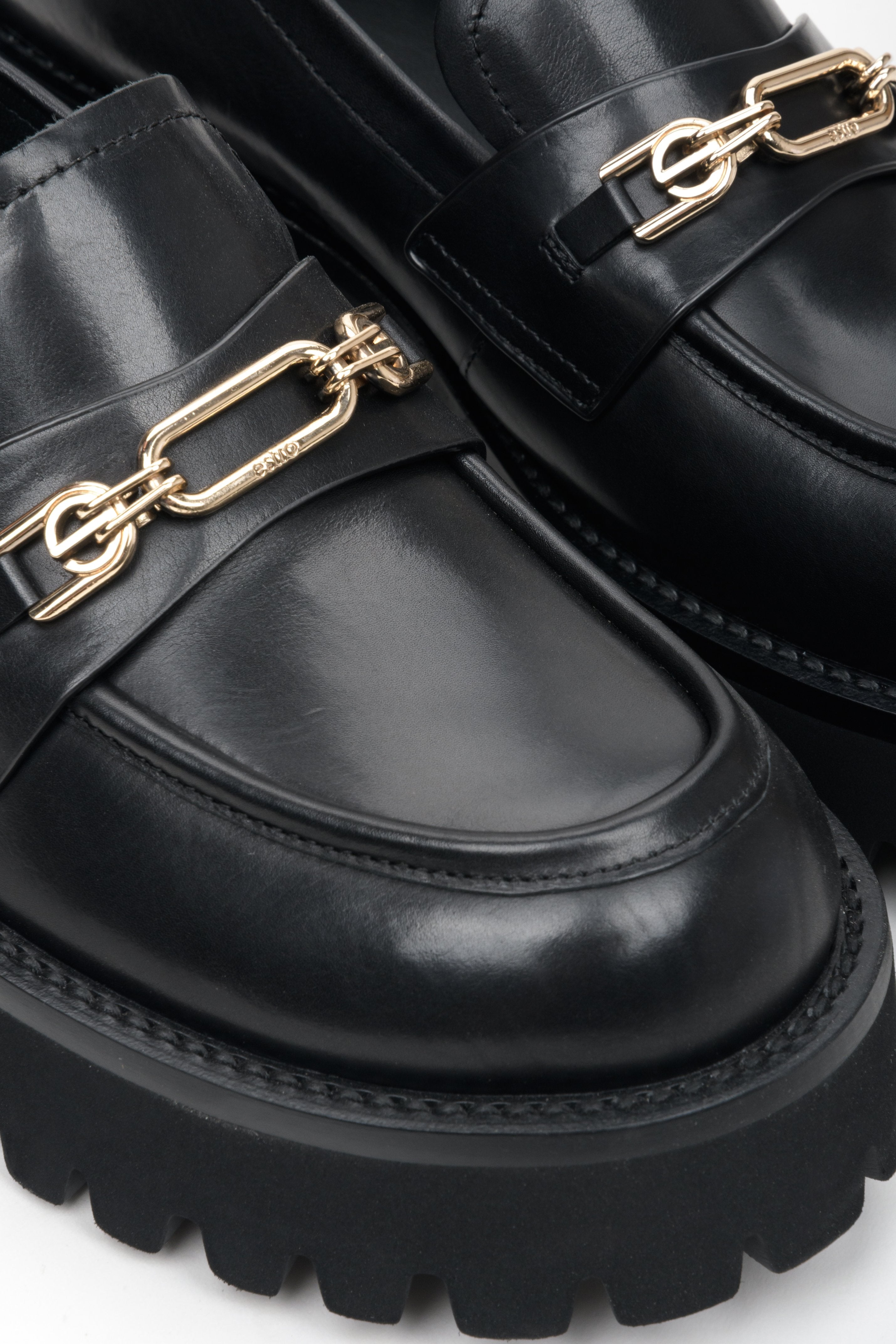 Women's Black Leather Loafers with Golden Buckle Estro ER00113583