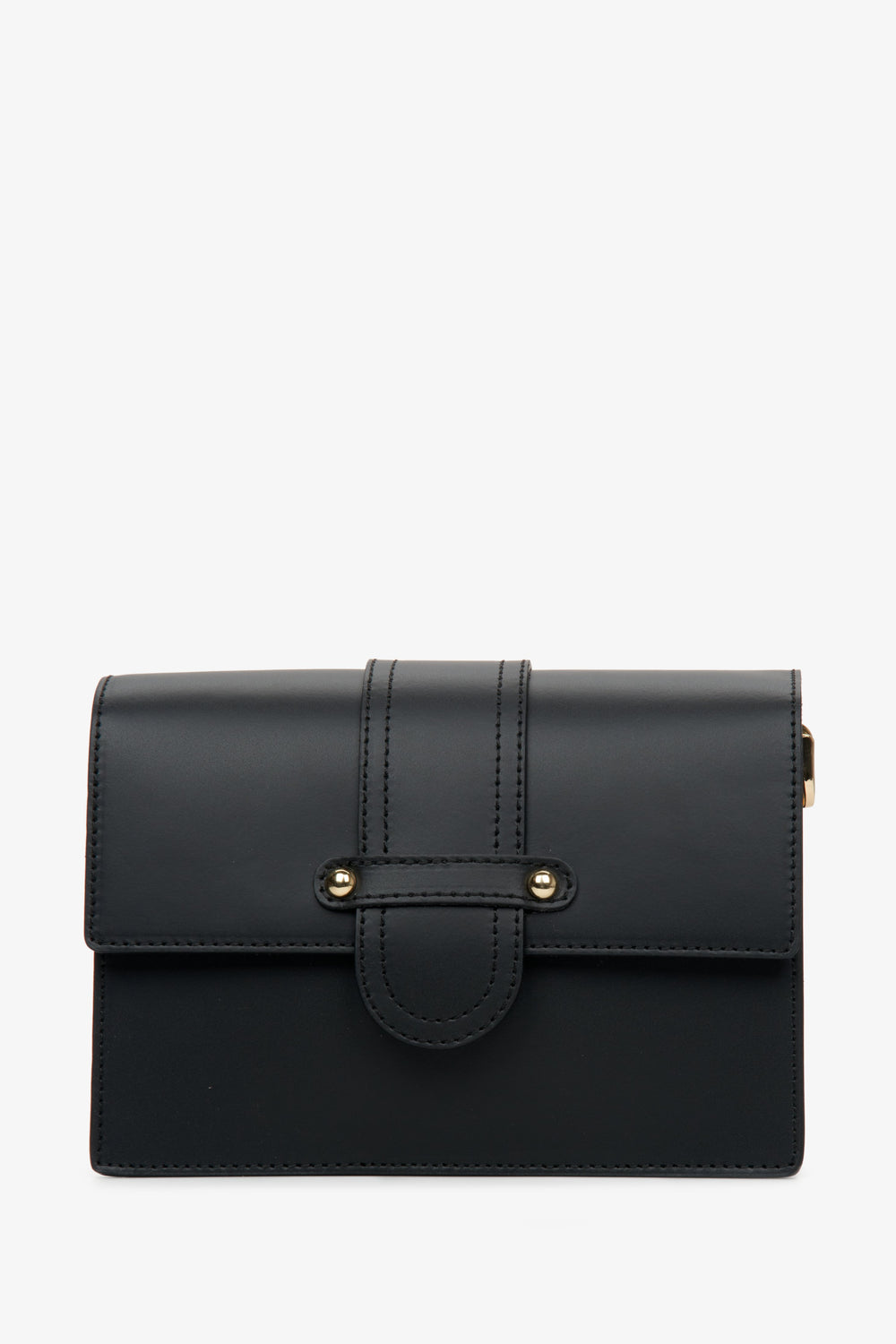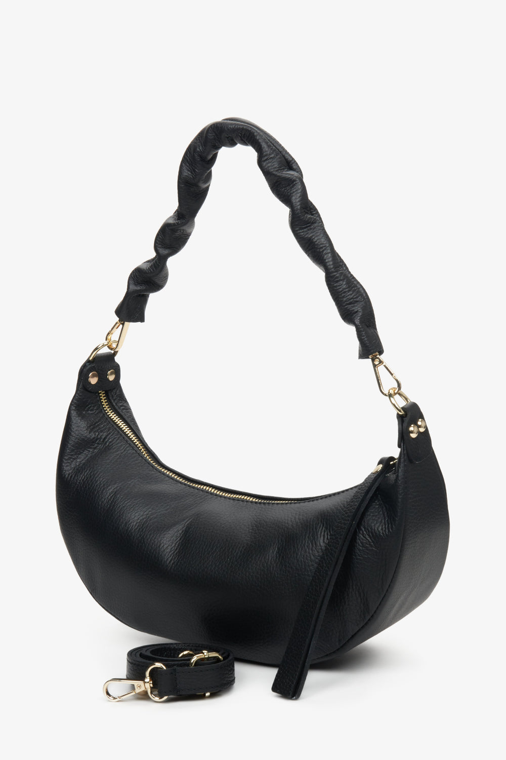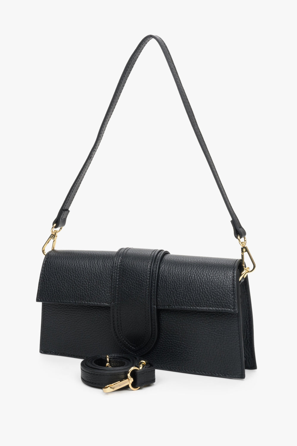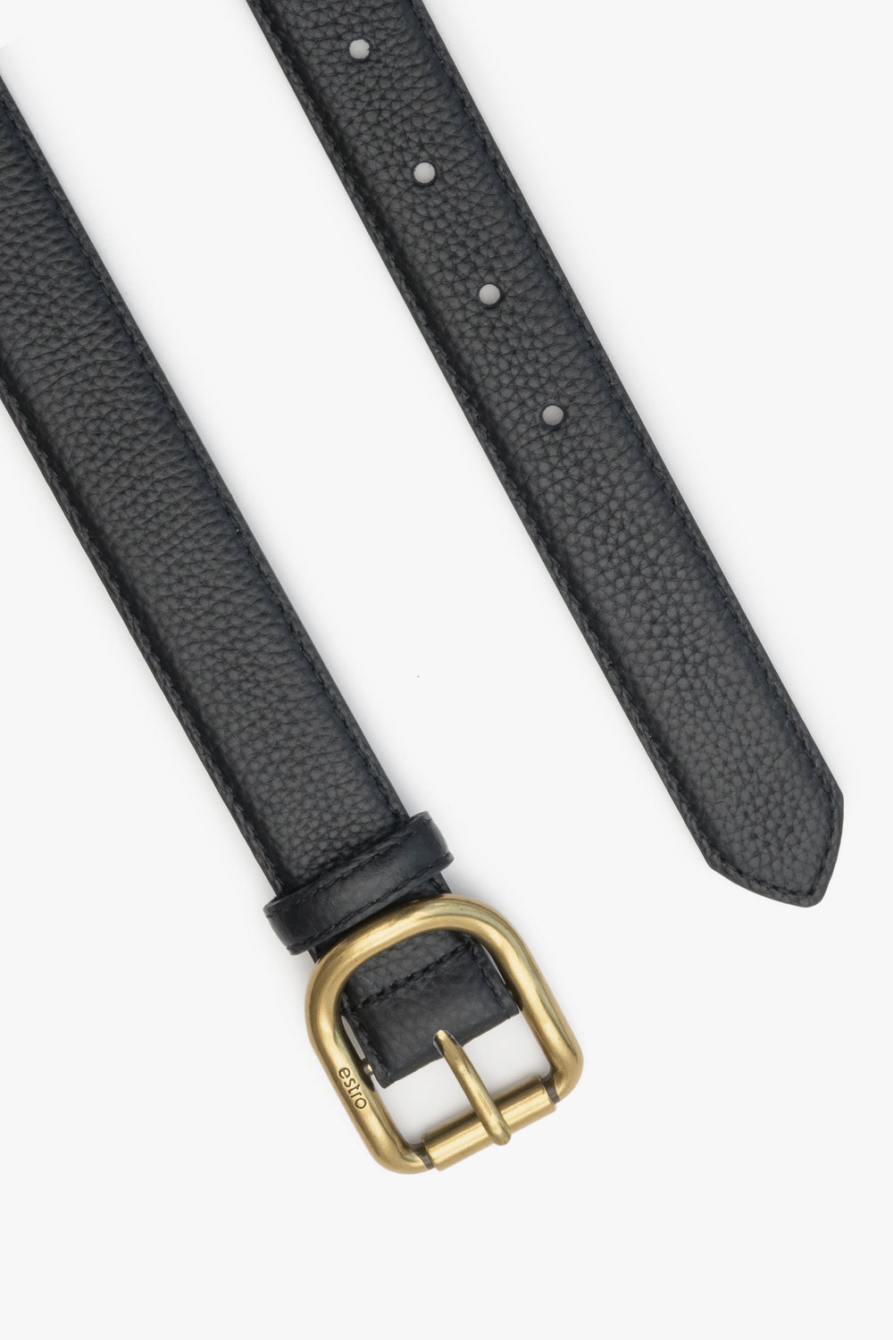 Women's Black Leather Loafers with Golden Buckle Estro ER00113583