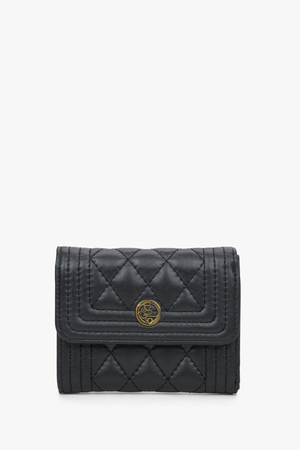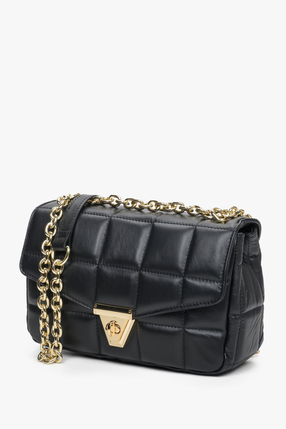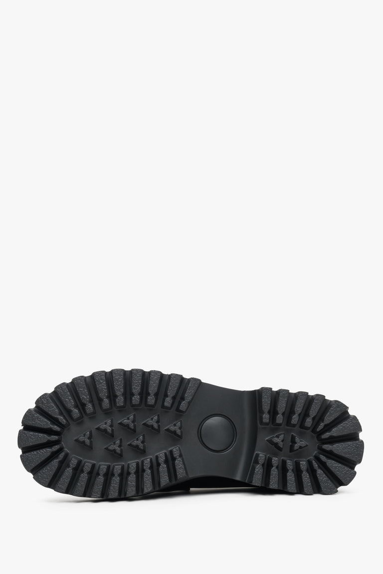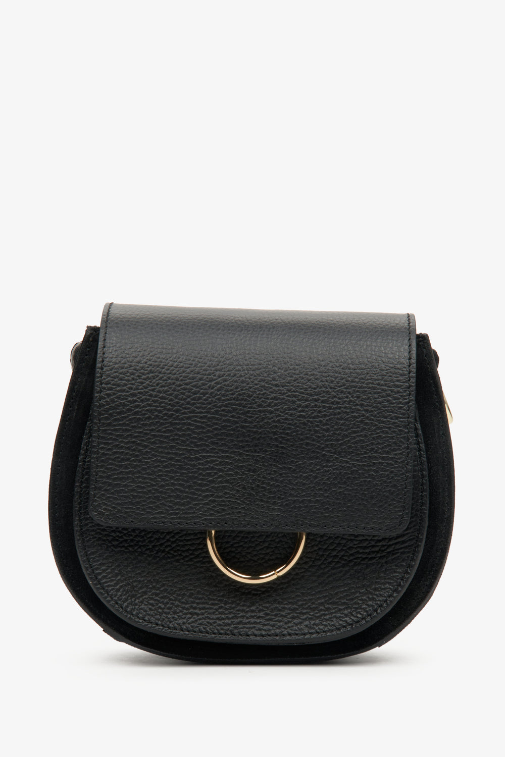 Women's Black Leather Loafers with Golden Buckle Estro ER00113583