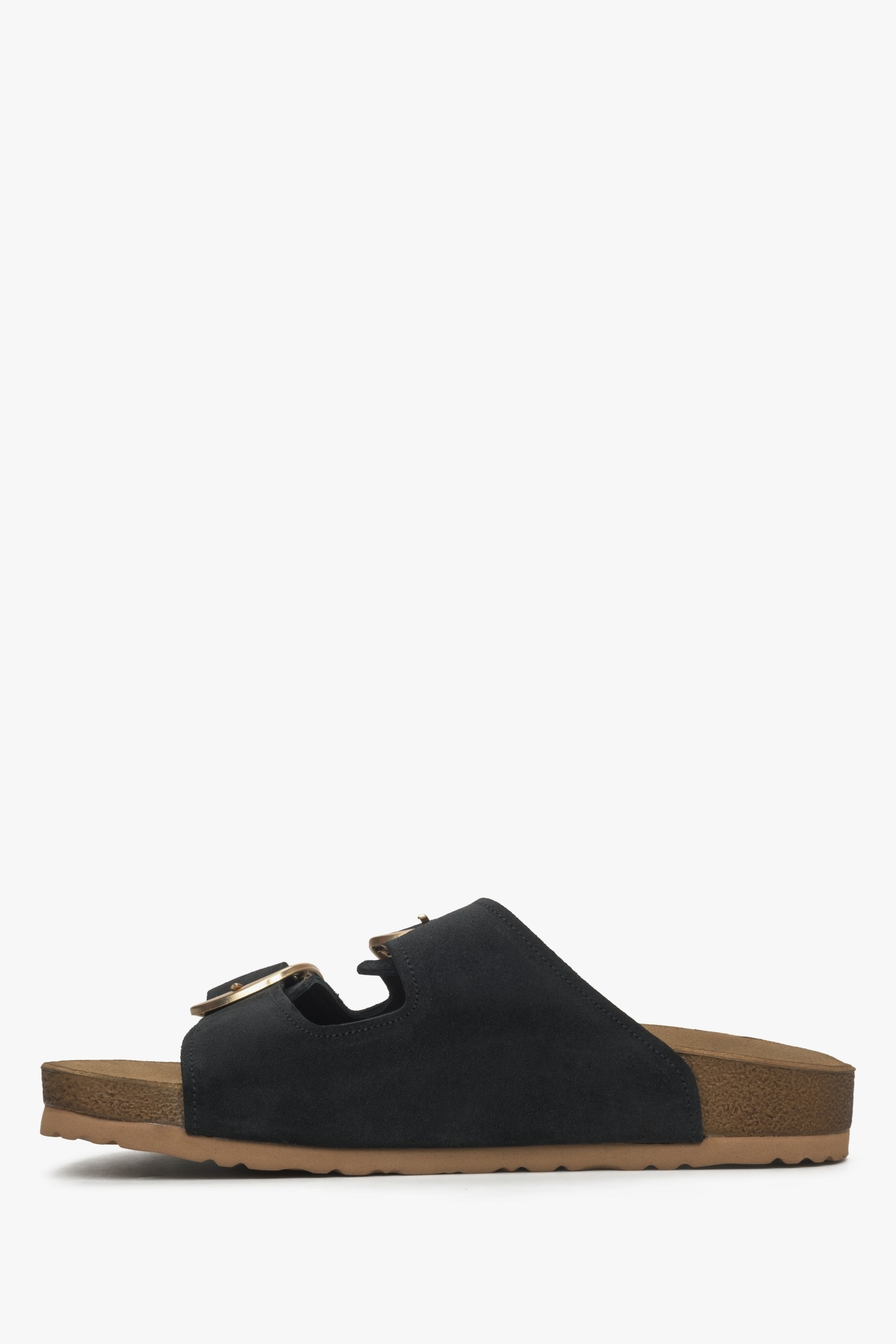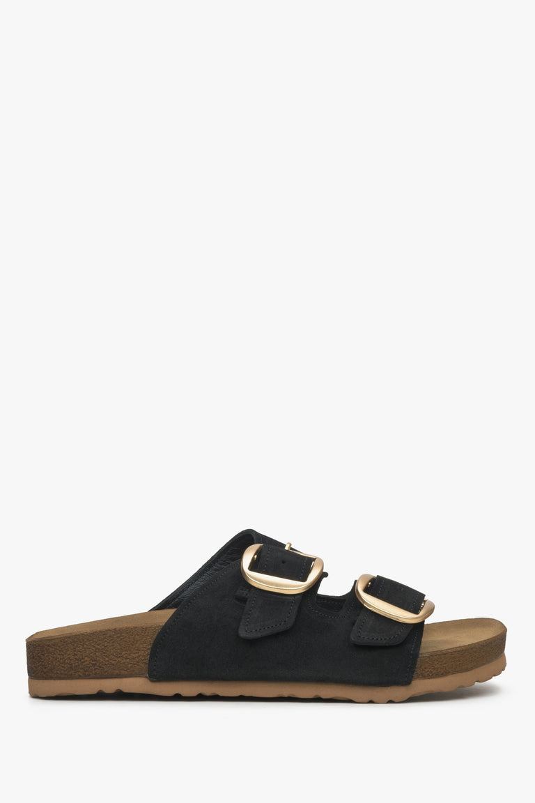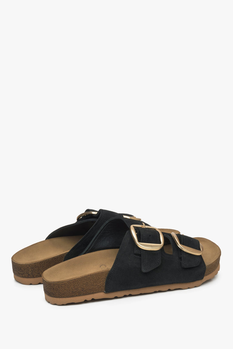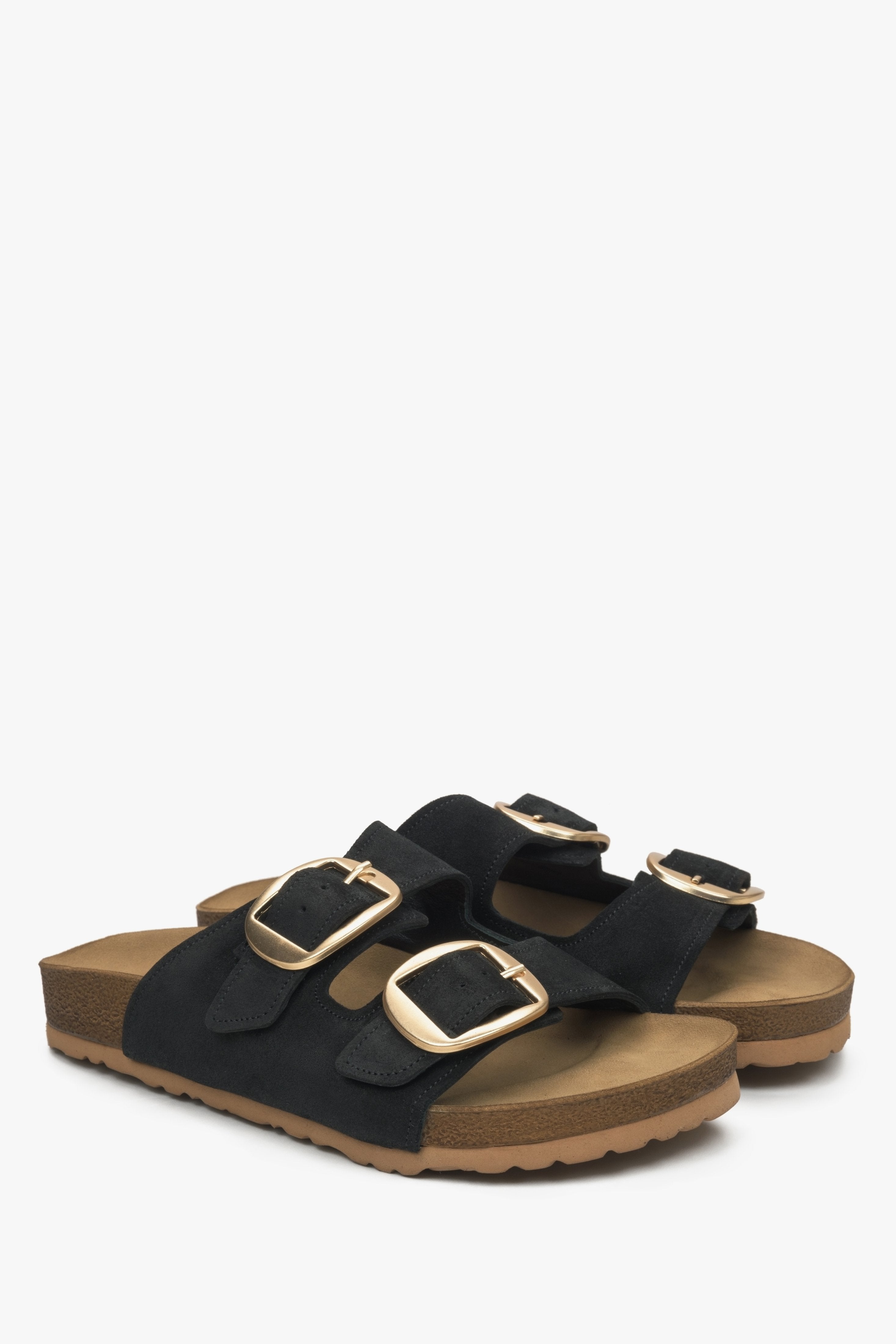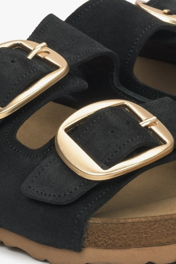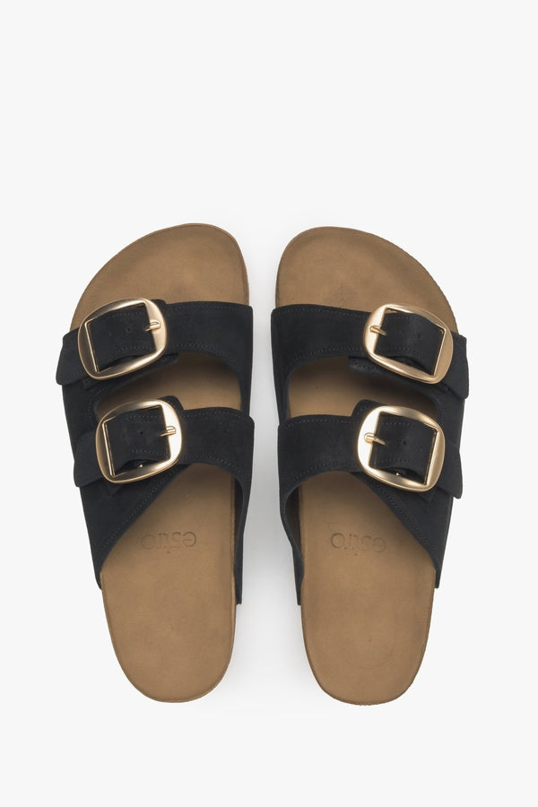 Women's Black Velour Slide Sandals with Thick Straps Estro ER00115133