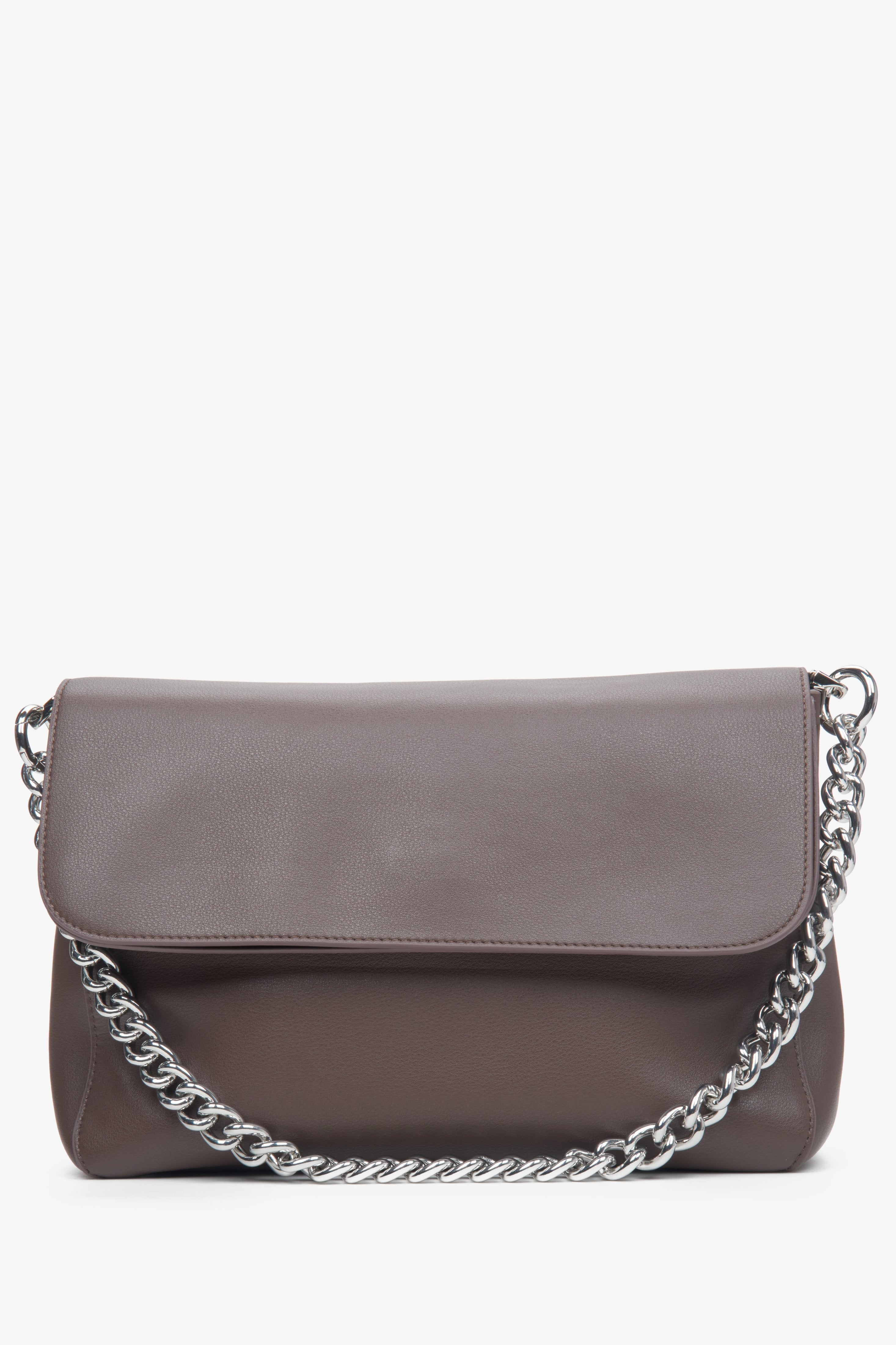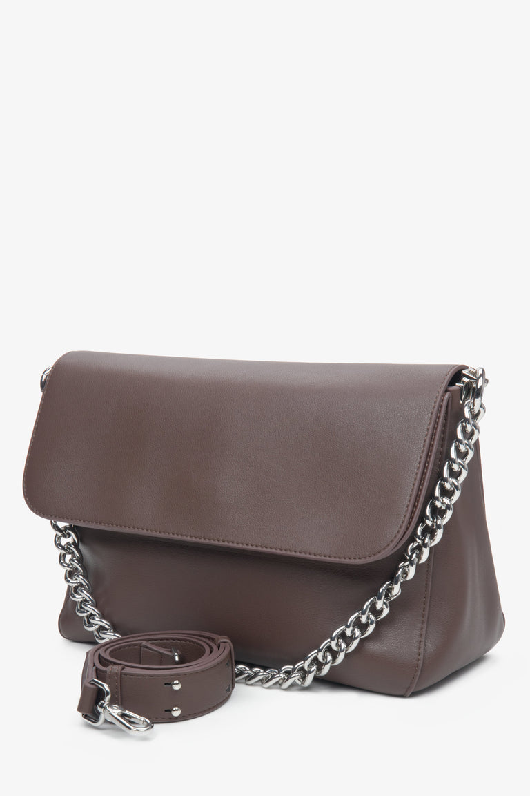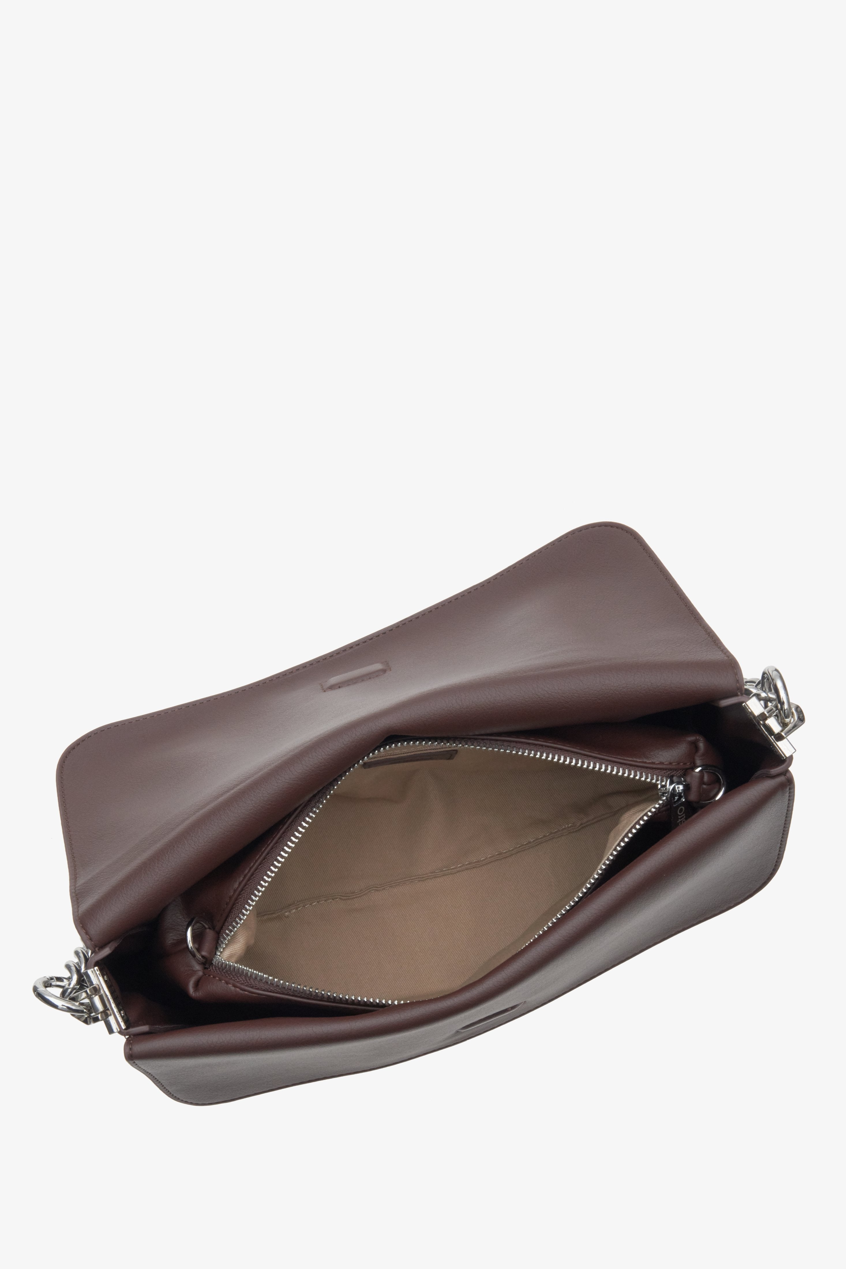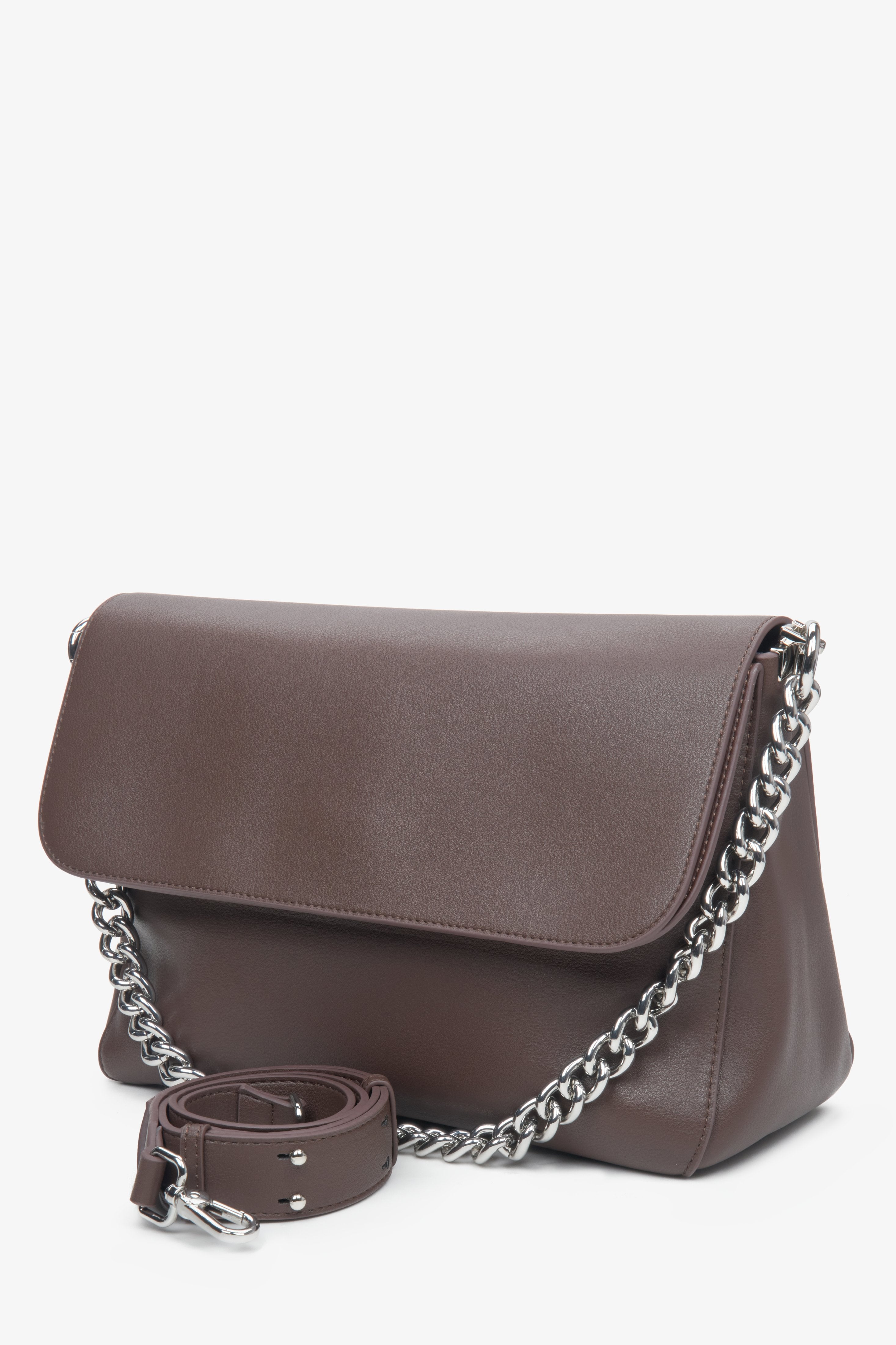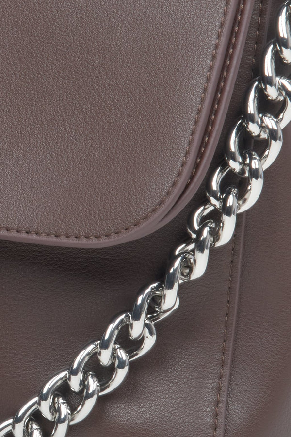 Women's Dark Brown Leather Crossbody Bag with Silver Chain Estro ER00113764