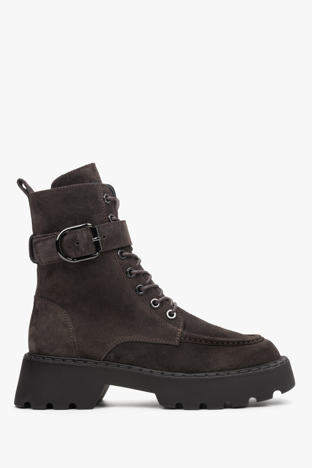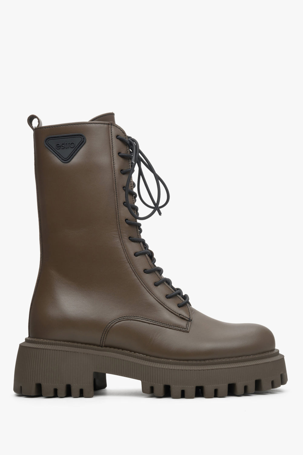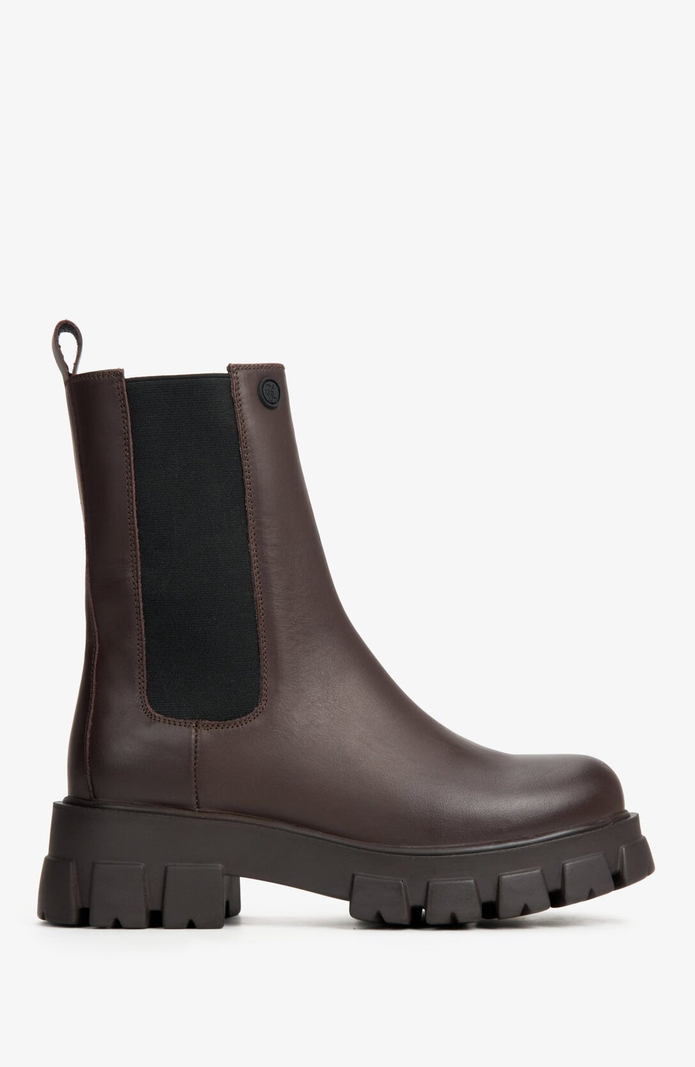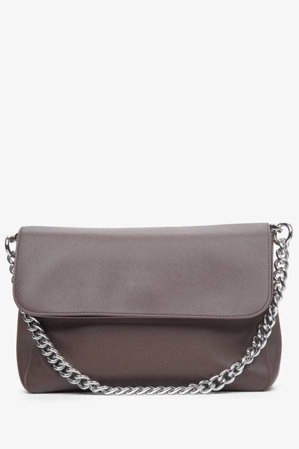 Women's Dark Brown Leather Crossbody Bag with Silver Chain Estro ER00113764