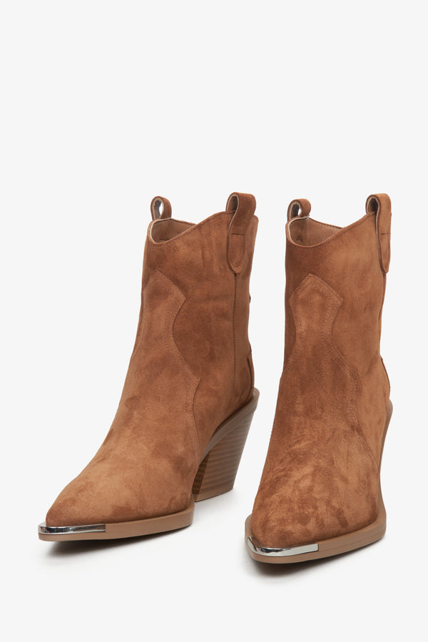 Women's Brown Suede Cowoy Boots with Silver Accents Estro ER00113826