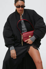 Indulge in luxury with our women's burgundy leather shoulder bag. Made with rich, supple leather and finished with elegant gold hardware, this handbag is the epitome of sophistication. With a versatile shoulder strap, this bag is perfect for any occasion and will elevate any outfit.