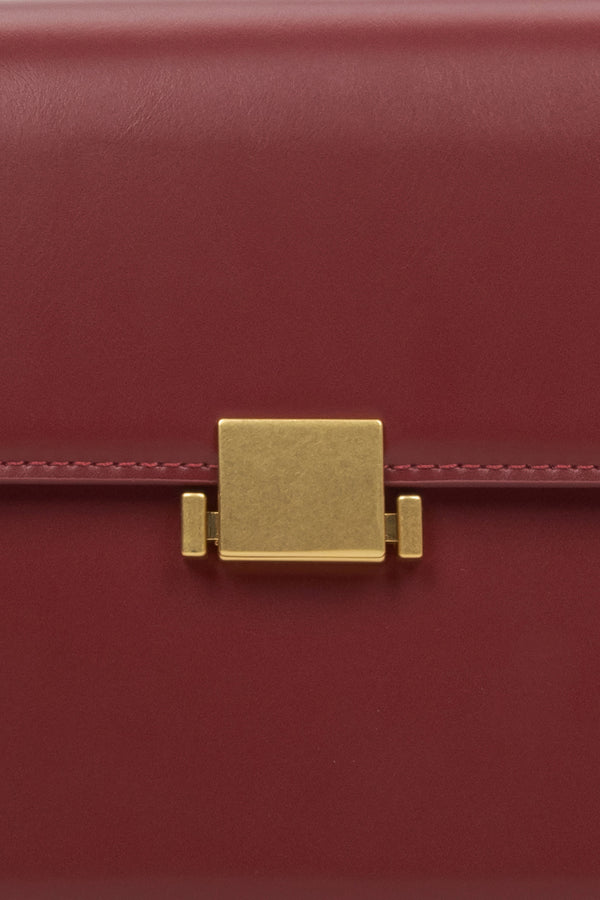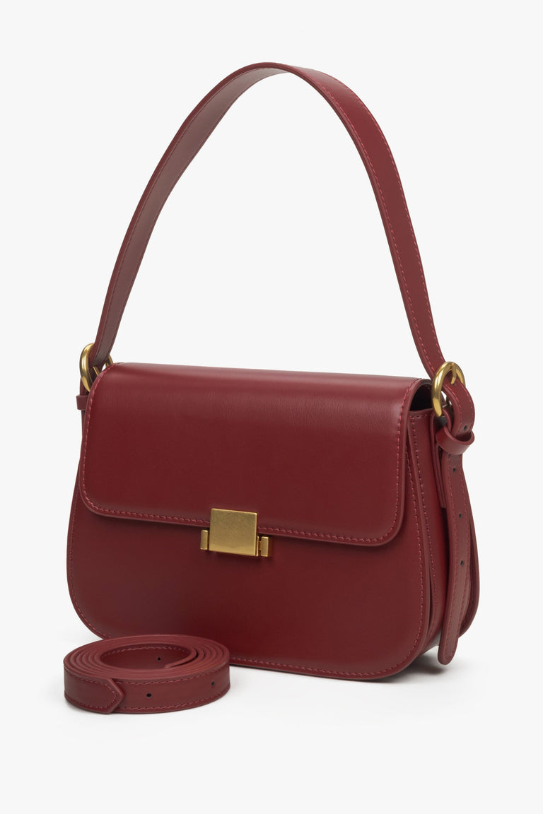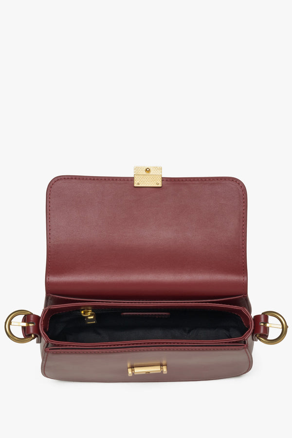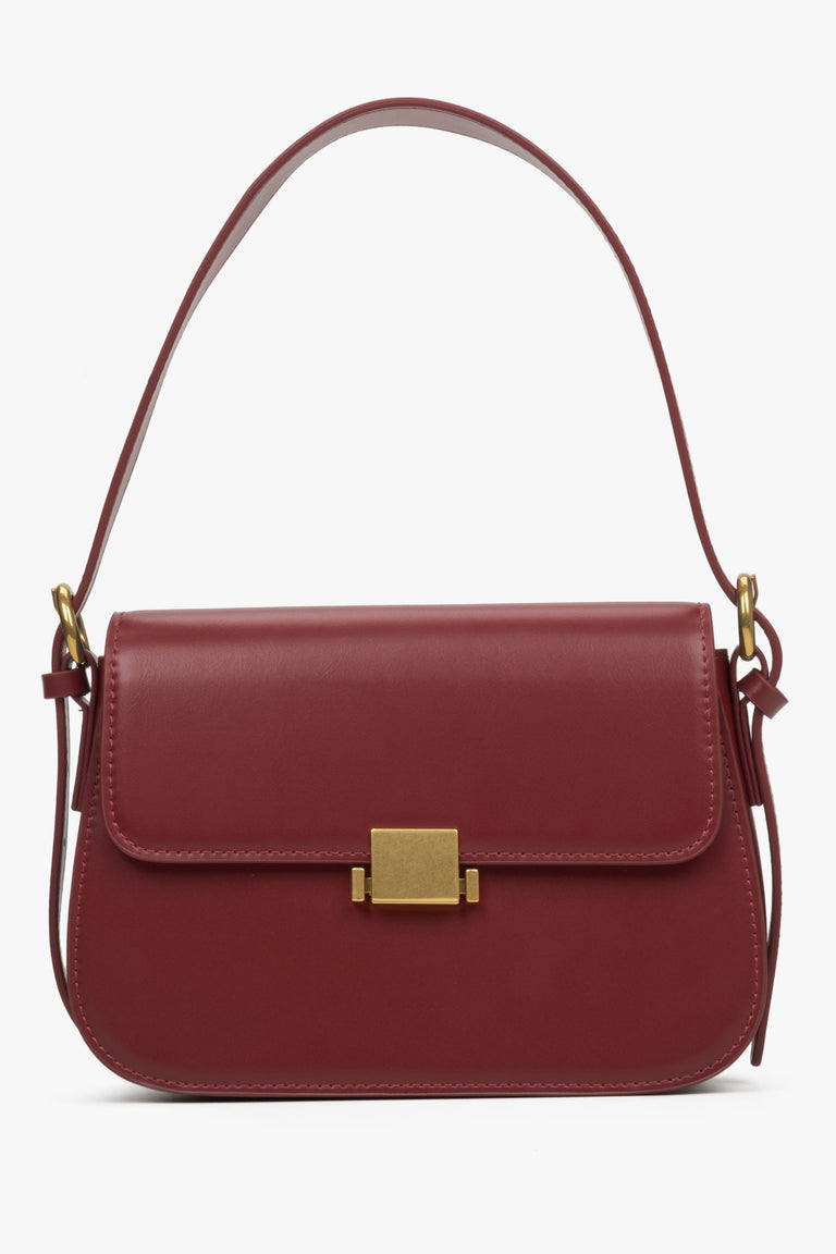 Women's Burgundy Leather Shoulder Bag with Gold Hardware Estro ER00115679