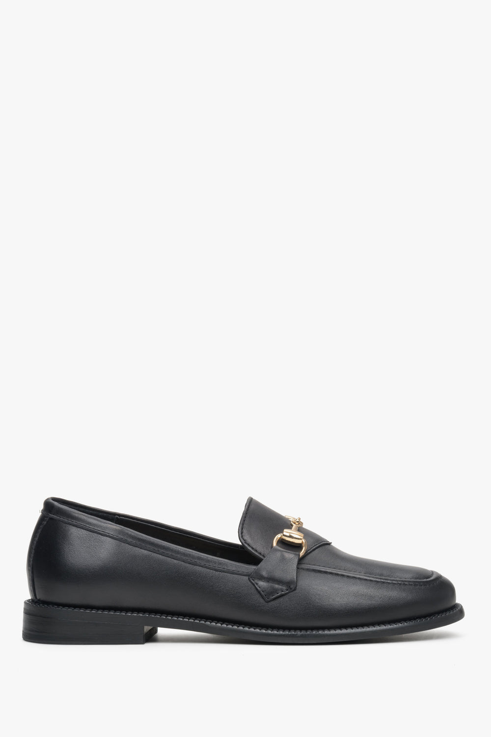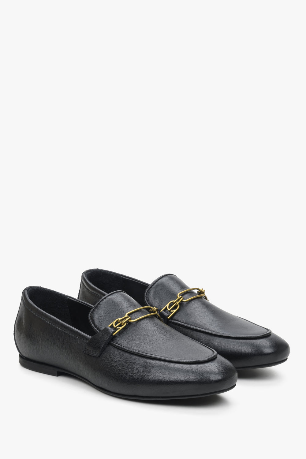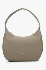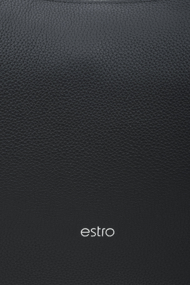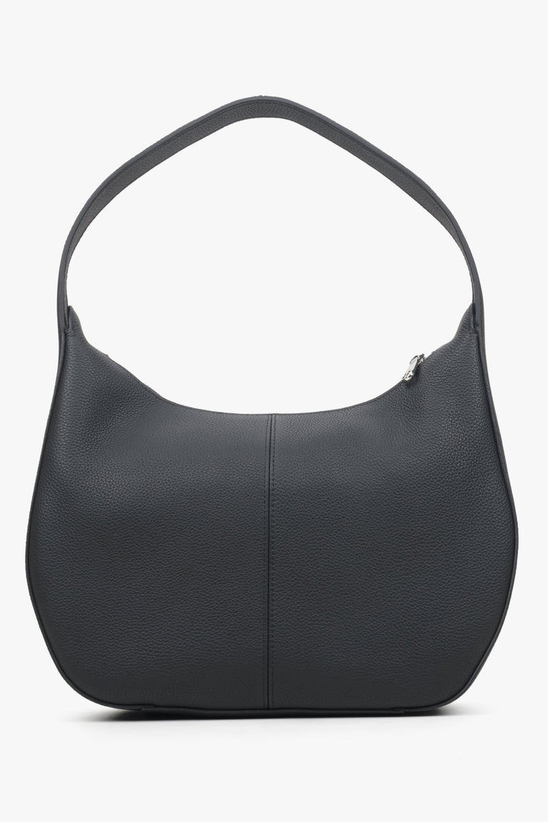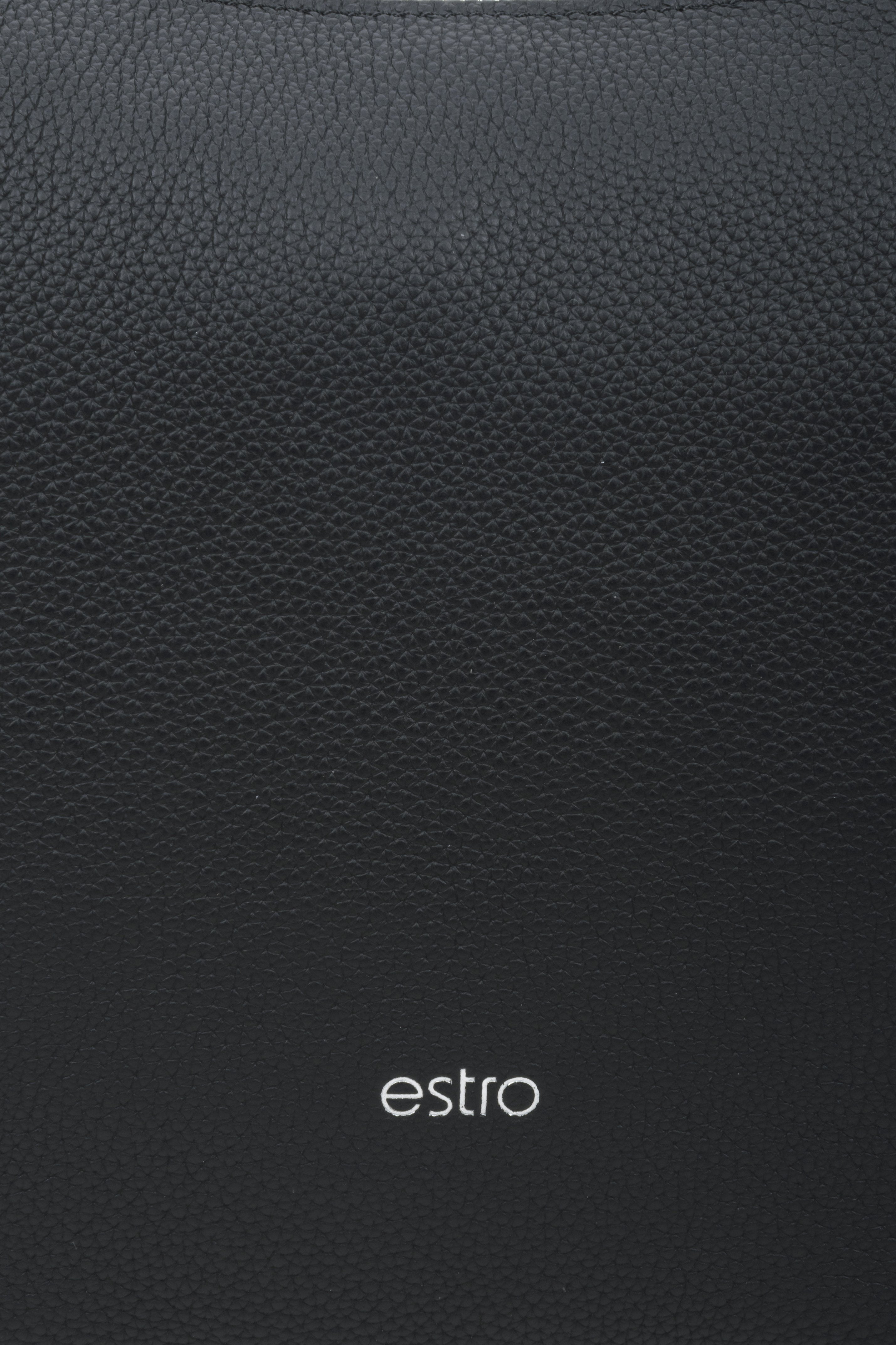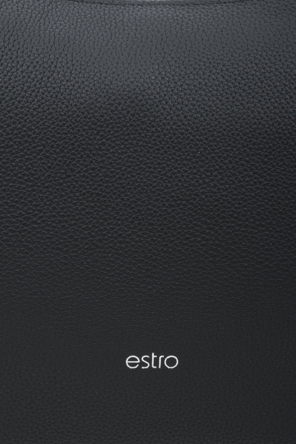 Women's black Estro crescent-shaped handbag made of genuine leather - close-up on the details.