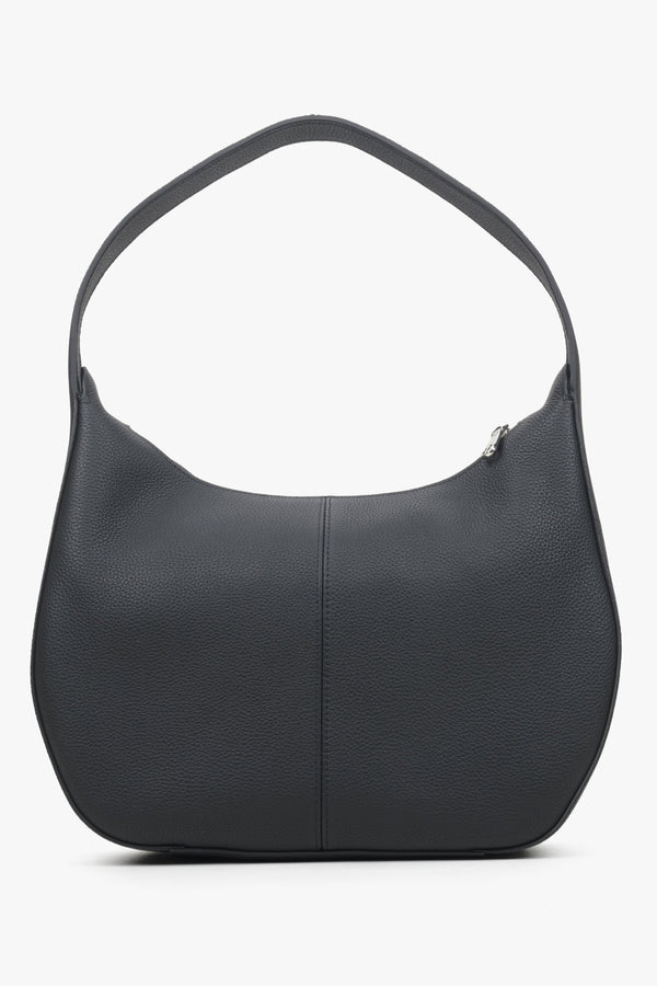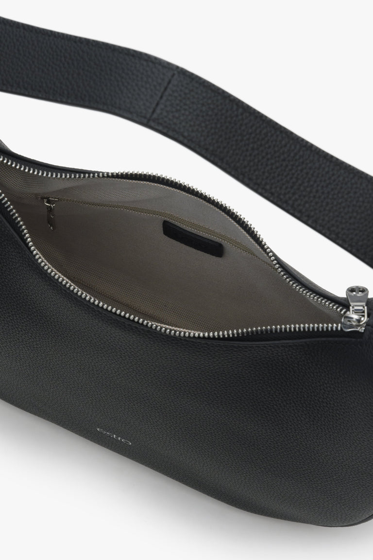 Women's crescent shaped shoulder bag made of genuine leather in black colour.